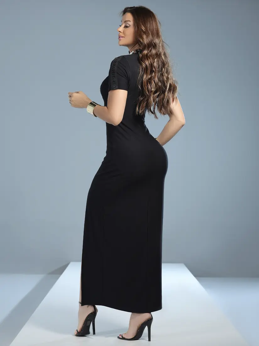Vestido Longo Preto Estiloso e Autêntico com Fenda Lateral Pit Bull Jeans