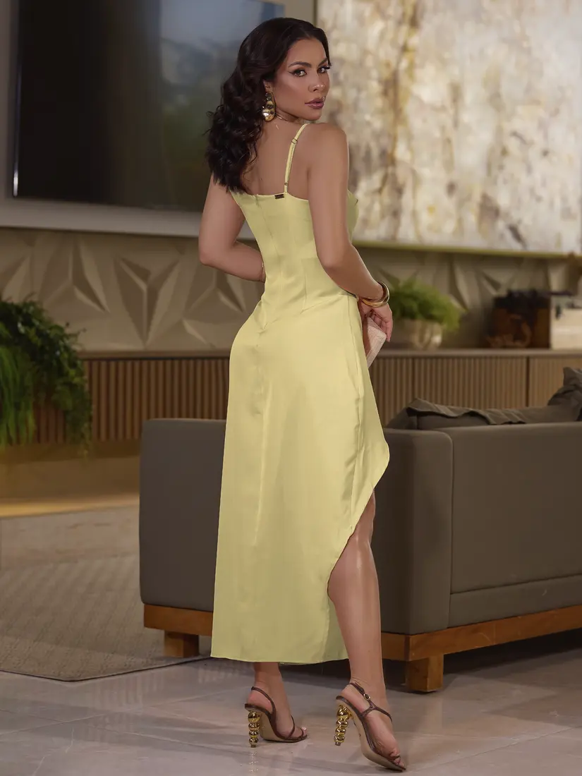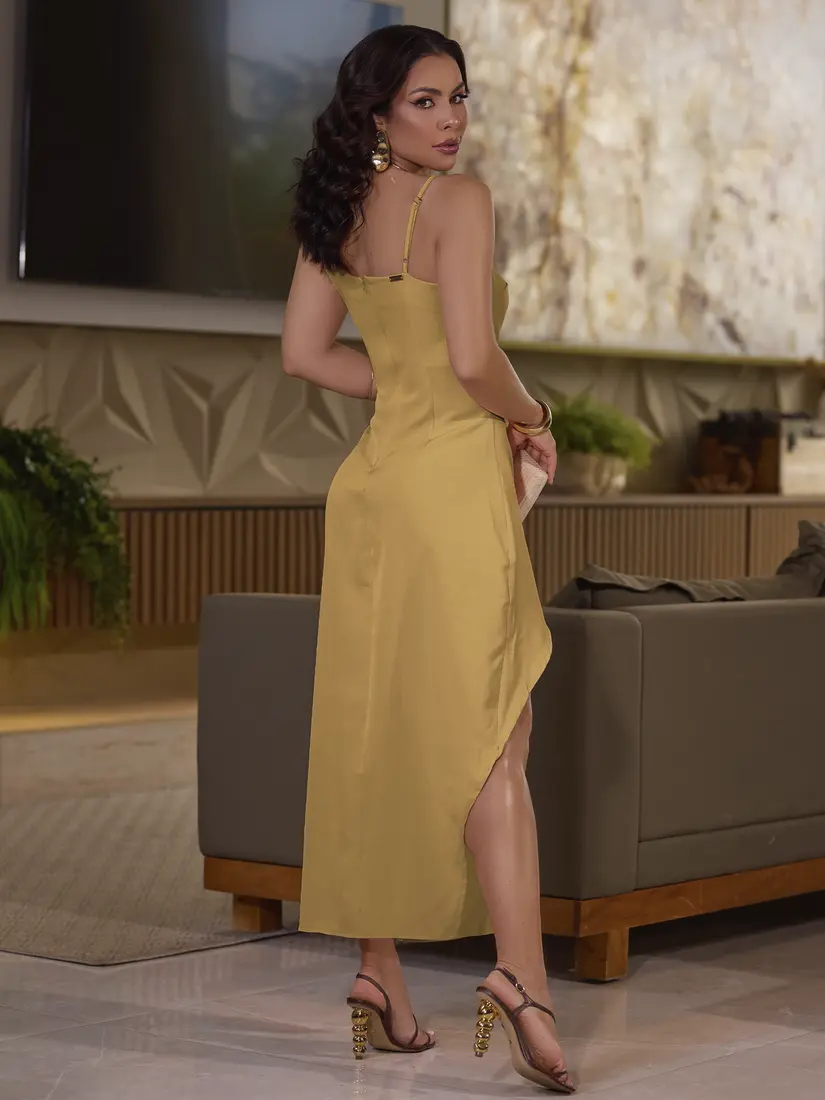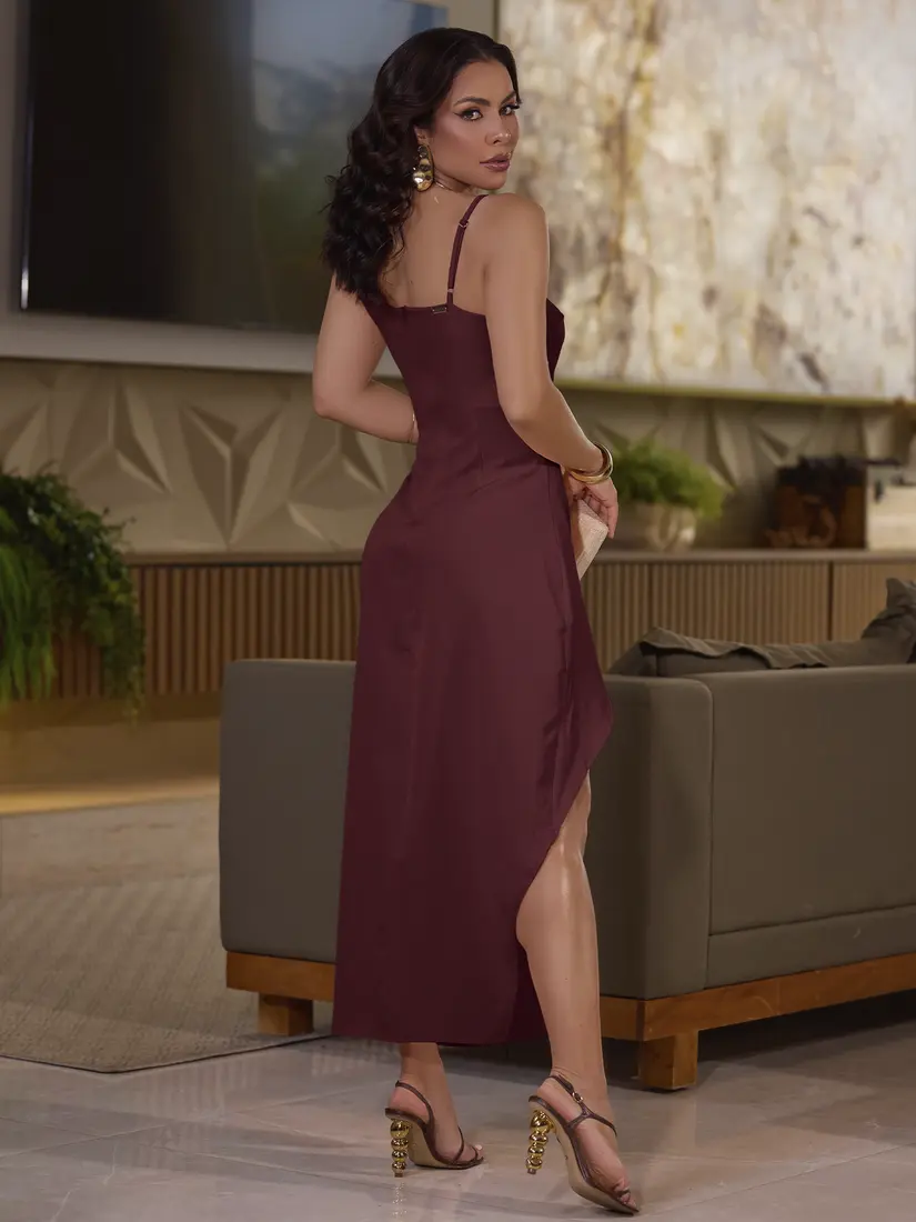 Vestido Midi Elegante e Sofisticado com Fenda Lateral Empório Pit Bull