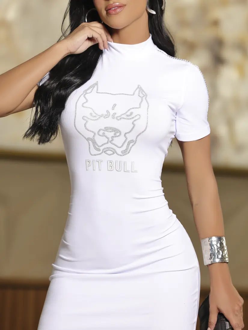 Vestido T-Shirt Estiloso e Modelador com Detalhes Únicos Pit Bull Jeans